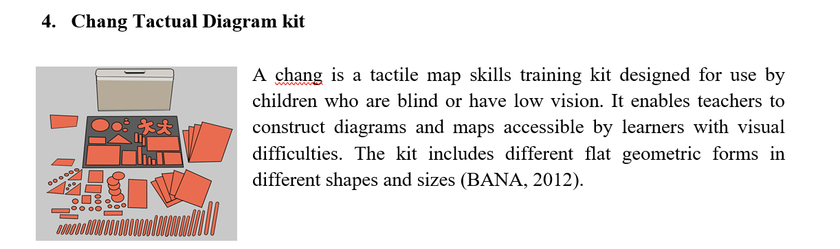 This topic introduces you to some equipment and materials used in developing tactile graphics. The equipment and materials include Stencil Embossing Kit (Crafty Graphics), Thermoform, Capsule paper, Embosser with graphic capabilities, Tactile Graphics Kits, Chang Tactual Diagram Kit, Tactile Graphics Software, Omnifix® Cubes, and Picture Maker.